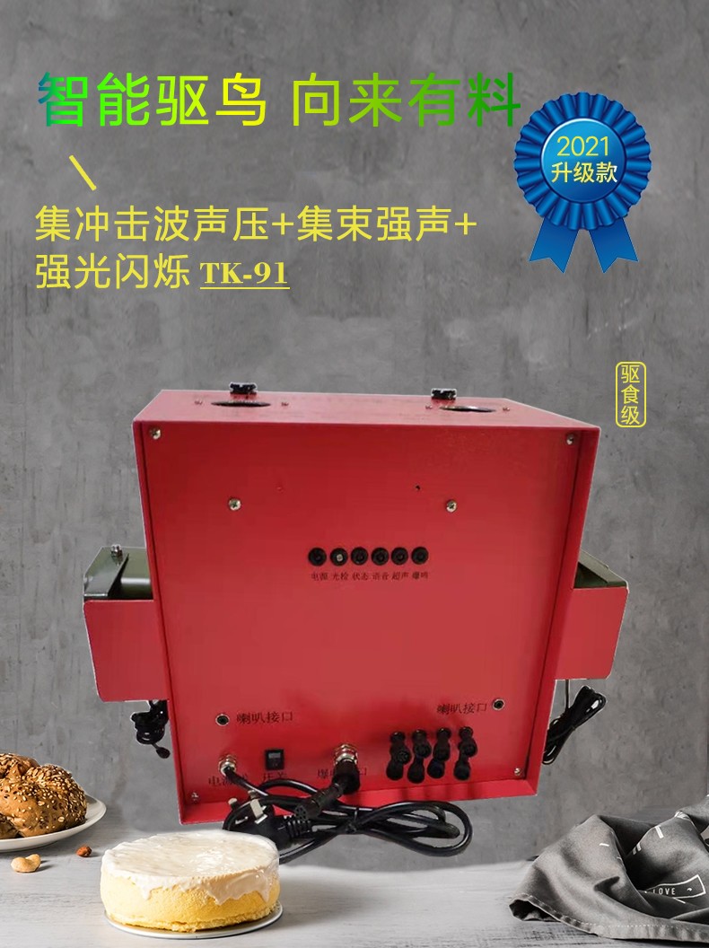 TK90系列集束冲击波驱鸟器是我公司研发设计的四级驱鸟产品,此驱鸟器是集电子炮技术、电子爆鸣技术、鸟天敌声、集束强声、强闪光等技术为一体,制造的综合型驱鸟装置,设备可产生集束式强声声压,制造高声压范围,使鸟类在此范围内耳膜无法承受,从而达到隔离鸟的目的。