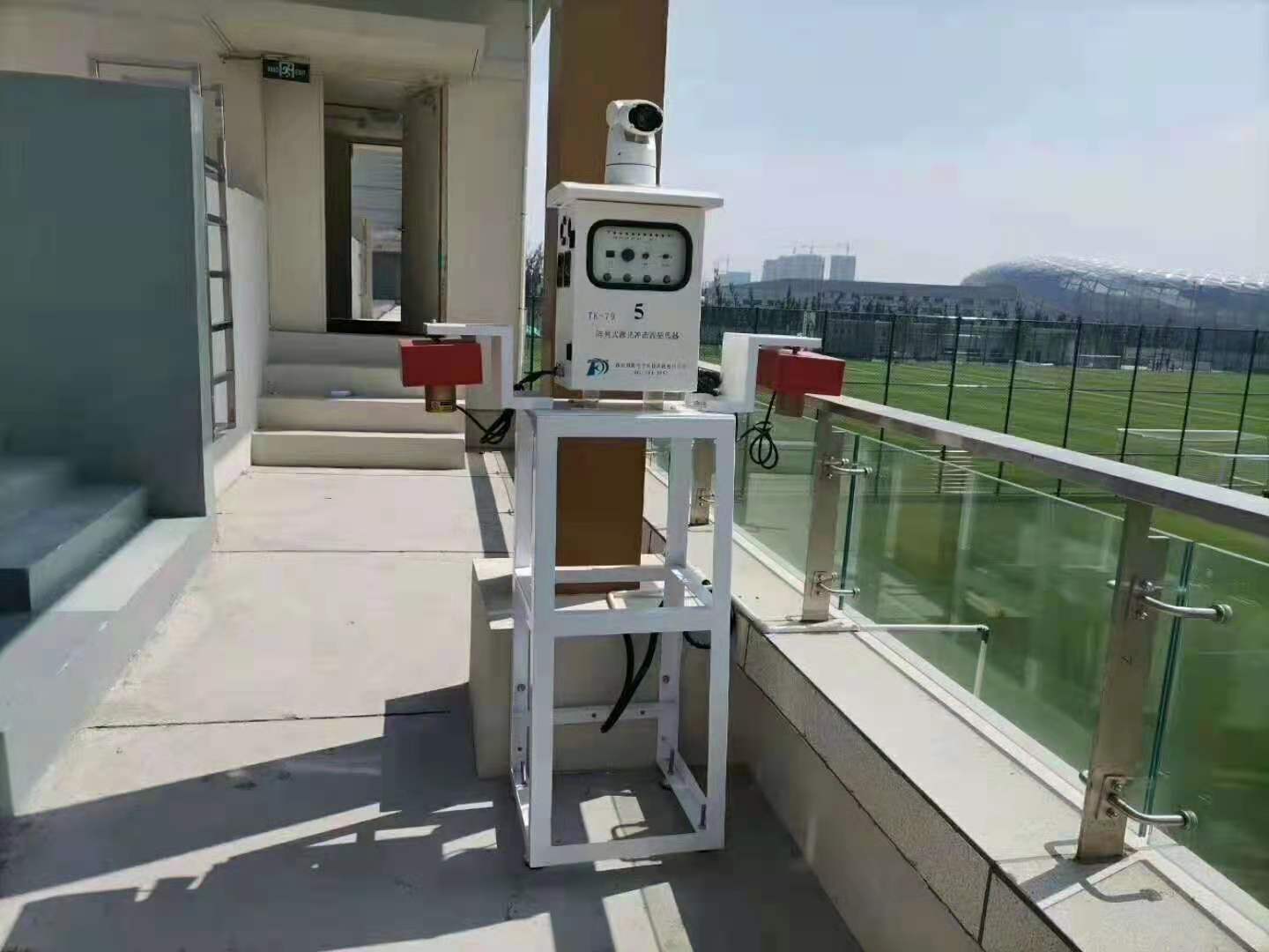 大连足球青年训练基地,智能型驱鸟器,激光驱鸟器安装现场